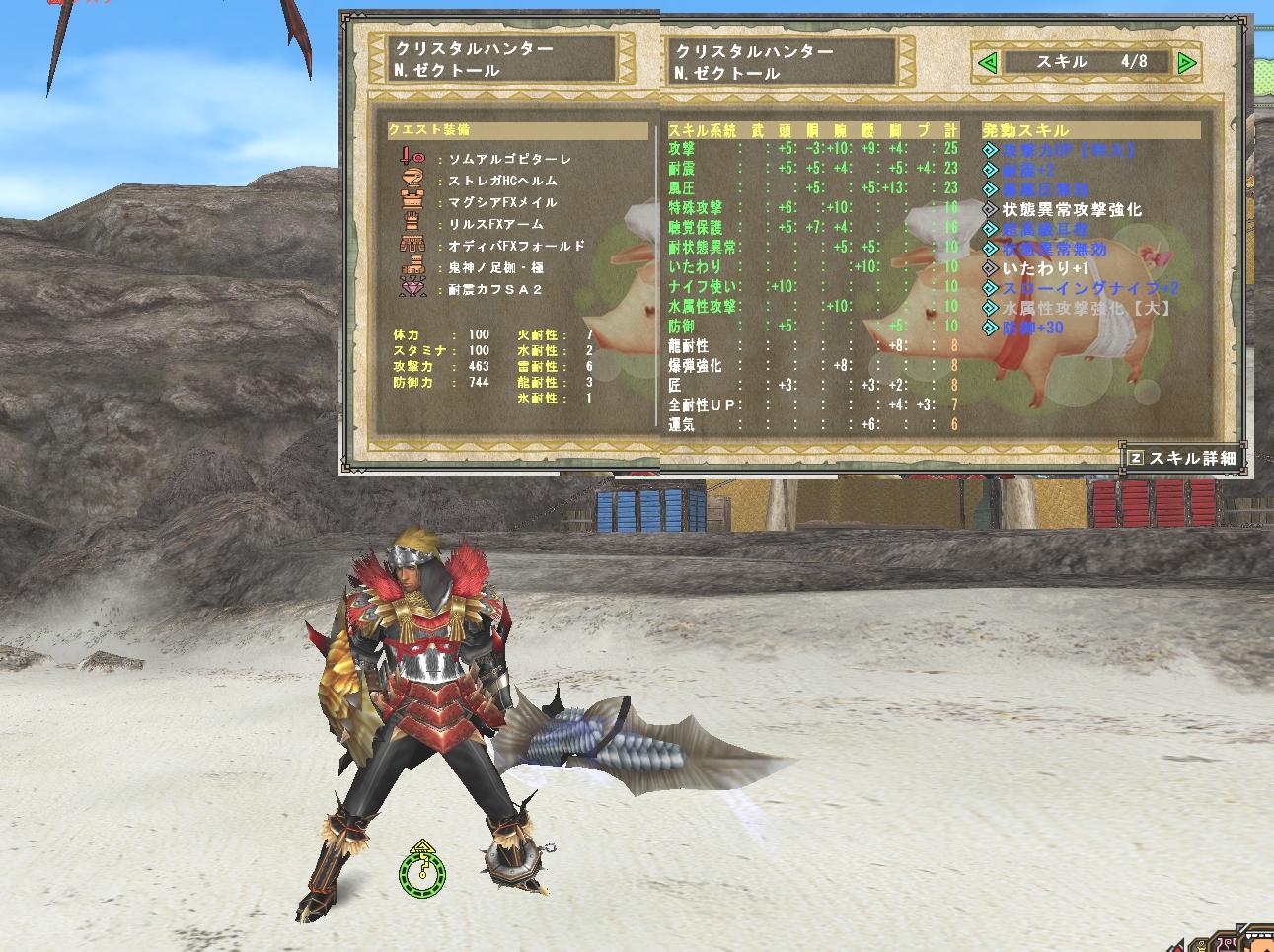 昨日の記録 朝にインしてZで天嵐ナズチを4戦してようやく尾がでてラスタ用装備(未)完成 素材節約のため防具の一部が最終強化されていないので防御力がマックスになっていないけどラスタ補正?で数値以上の耐久力あるはずなので大きな問題ではないかと。武器は何度も書くけどゲームとはいえ親子連れを分かれさすのが嫌いだからゴゴモアを積極的には狩らないから虚無なんて無理なのでソムアルゴビターレ、氷属性効く相手のみ虚無の性能を上回る・・・だけ。片手剣ではルコやザムザのように麻痺させると部位破壊がしづらい一部のモン...
