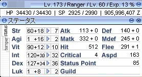 もう何回目なのか、多分4回目だと思うのですが…(;´∀`) 鉱山で何も考えずにダラダラ脳死で狩りた〜い! という訳で、鉱山アロスト1確ステにすることにしました。 これを―――――― こうして――――――!! こうじゃ――――――!!! …で、こうなりました。 熾天使と、完全ギガント型Str120ステです。火力はアップしましたが DexとVitが犠牲になって、HitもHPもゲッソリ減りました(´;ω;`) Vit低いと耐性取れない...