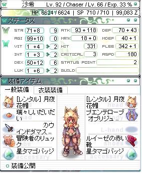 どもお久しぶりです、彩花です。 本日のROは終了いたしました。 ほら何処のBlogサービスもchrome押しで IEと同時立ち上げは可能ですが、ROとの互換性が chromeにはないらしくて放置露店中とかかけないのね。 最近この子と この子しか育ててなくて、 チケットの関係上2垢課金なんですが、 もう1垢にいけないorz もう2キャラともLv92のJOB66ですが 後4日ぐらいまで3次職になるのに時間かかりそうです。 尚明日でレンタル装備等...