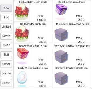 JUGEMテーマ:オンラインゲーム12月22日の定期メンテは23日に1日延期です。街にクリスマスの飾りつけが始まり、雪が降ります。December Holly Joliday Lucky Box発売。一個300KP以前に有ったShadow Equipment Box 発売が来ます。私はフィールドで狩った大ゴキがドロップしたShadow Equipment を持っていますが、新規キャラ(特にガンスリンガー)を作った人には必要でしょう。当たり箱形式で鎧と盾が当たりますが、本当に必要なのは武器スロット用の籠手では?