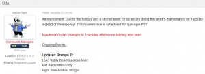 JUGEMテーマ:オンラインゲーム本日、午前6時より定期メンテです。来年は定期メンテが木曜午後1時(日本時間だと金曜午前6時)に変わるようです。1月第二週だけの特例なのか?は不明です。6ヶ月チケットに7000KPオマケ付きプランンが登場!Σ(・ω・ノ)ノRWC箱は1月7日まで発売クリスマスイベント開始首都中央にサンタが出現して、各地への配達を依頼する模様。<ウインドウショッピング>Thanatos Hammer