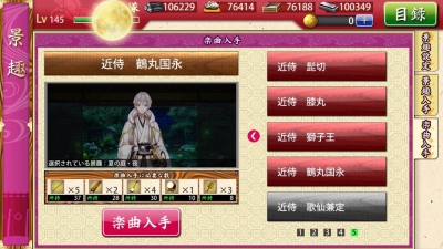 JUGEMテーマ:オンラインゲーム やっっっと!鶴さんの近侍曲が!実装されました! (´∀`*)<ワ~イ さすがというかなんというか、まあ、鶴さんだからギャップがある曲だろうなと予想していたので、特に驚きはしませんでしたけど。いい曲ですよね。 そして、もう何度目か覚えていない悲報秘宝の里。 篭手切江が思った以上に好みなので、玉集め、十万目指して頑張ります。 そういえば、通行手形の補充方法が少し変わりましたね。 小判がカツカ...