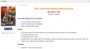 やる気云々というか、いま集中力がないかんじ しばらく低姿勢プレイですね 定期メンテ終了 →今週の定期メンテ。 カンパニーに掲示板設置。 →Iron+神癒ウィネ →期間限定platinumの聖巡デカラビア。 →修魔5回目。新たなボス部屋が追加。思念武器に+1追加。(貰える経験値が1.25倍に。) →塔魔レベルが4までに。 →来週開始の1周年記念人気投票に使用するアイテムをデイリーミッションで配布。イベントタブ。 →来週の予定も公開。一周年記念として人気投票のほか、ランキングのない「壊塔?戦」も! 神癒ウィネ...