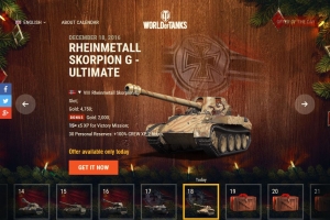 JUGEMテーマ:オンラインゲーム [アップデート] Update 9.17 リリース スウェーデン戦車が実装されました。Tier1軽戦車がガレージスロット一個付きで全員に配布。経験値100%搭乗員付きです。「S戦車に乗りたい!」と思っていた私はフリー経験値を貯めていたので、Tier4駆逐戦車まで一足飛びに開発しました。でもそれ以上は経験値もクレジットも不足ですw [スペシャル] 12月熟練ブレイク 12/16-12/19 いわゆる「週末経験値3倍キャンペーン」 [スペシャル] ホリデー作戦 後述のNew Year Tree B...