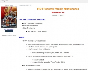 JUGEMテーマ:オンラインゲーム ハロウインイベント継続 ニブルヘイムのスポットライト継続 10月の新コスチュームの交換やエンチャントのバグ修正 サマータイムからウインタータイムへの切り替えが11月6日PM2:00(日本時間は11月7日AM6:00)頃実施されます。日本ではまだそういう習慣が無いので、煩わしいですね。 <近況> メインマシンのGeForce GT520グラフィックボードが故障し、少しの負荷で超高温になってマザーボードのシステムエラー「High Temper」が発生。数年ぶりに新しいグラボ(GT710)を注文しまし...