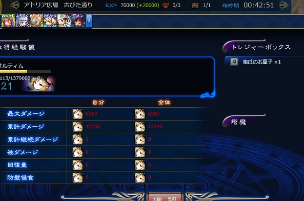 JUGEMテーマ:オンラインゲーム ちょっと萎えポヨ 最初の方は本連れて行って全体攻撃でいけるかな…と思ってアスモダイ。 思念の本もってアシスト餌。トルネードは一番最後に使われてしまうので他のスキルはすべてOFFにしておきます。すると自動で一番最初に使うからね。 アスタロトに賢天の服、物防とファストムーブ?のパッシブもち。敵の行動前に全員倒せますね。 チャネリング開始キャンペーンのおかげで共闘ボーナスも増えてるんでしたっけ?経験値はおいしいのでソロ共闘です。 さすがに雑魚マップの最後は21lv一体...