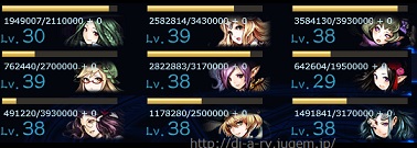 JUGEMテーマ:オンラインゲーム 昨日気が付いたこと。 ボナカンストしてる子がちらほらいる…。 ボーナスとはレベルアップの際にランダムで付与される(可能性のある)数値で、強化の際は餌のボーナスを受け継ぐこともできます。 レア度が高いほど付与される確率はあがります。レア度が低くくてもボナの上限までためれば金くらいのステータスには張り合えるくらいになる…らしい 手持ちでボナカンしていたのはこちら: どの魔神かわかるかな?← 魔法職2人のは防御の数値なんですが、もともと上限が低いので埋まりや...