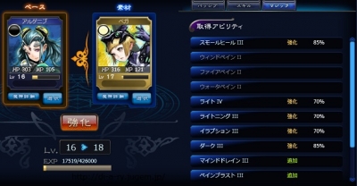 JUGEMテーマ:オンラインゲーム 思い切ってレライエを白ロノウェにくわせました。 もう枠がいっぱいだった。我慢できなかった レライエさんは大黒柱だったし、色々扱いがあれだったので大事にしてあげたかったんだ〜〜アンドラスのほうが好きだけどー!(本音) また素でひけたらいいんですが。近い時期に2,3体ゲットしてたのなんだったんでしょうね(一体はアムドゥの餌に) 魔法をもう一人増やしてもいいと思うのですが、パイモンとグシオンが属性攻撃打てるので、どうだろう。 白ロノウェにすべての魔法とペインが寄...