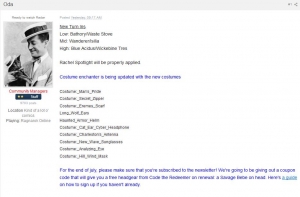 JUGEMテーマ:オンラインゲーム エンチャント可能なコスチュームが増えた模様。 7月末にNEWSMailで頭装備プレゼントのコードが送られてくる件、ウザいニュースレター受信を拒否にしている人は、今のうちに受信する設定にしておいてね(^_-)-☆ <NEW GAME!第三話> 朝寝坊で遅刻しそうになって、慌ててコケる主人公可愛いwこんなに可愛い女性ゲームクリエイターなど居ない!(血涙主人公は、五更瑠璃が成長したらこんな姿になるのでは?という外見。髪の色はウイッグということでひとつ・・・w