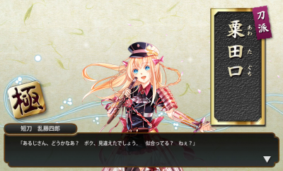 JUGEMテーマ:オンラインゲーム 乱ちゃんがすごい格好になって帰ってきました。 キミ、刀剣じゃなくてどっかのアイドルかなんかじゃね?www 見た目は突っ込みどころ満載ですけど、残りの二通のお手紙が不穏で笑えないんですよね〜 二通目: ちょっと待て。遡行軍と戦うならまだしも、過去の人物関わっちゃっていいの?というかみんな普通に見えるんだ!? 審神者混乱中。 三通目: そこはかとなくヤンデレ臭が...... 審神者が良からぬことを考えるかもしれないって思ってるあたりがな〜 冷静といえばそうだけ...