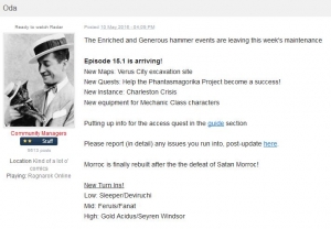 JUGEMテーマ:オンラインゲーム 意訳:Episode15.1 を実装したらバグだらけだけど修正は少し待ってね。6月にはアニバーサリーイベントも控えているから、早まって引退しないでね。 <ばくおん!!> 女子高で賭けレースとか完全に法律違反なので念のため。客寄せにメイドコスチュームとか、いいぞもっとやr