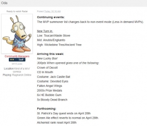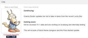 JUGEMテーマ:オンラインゲーム 内容から見て「Patch Notes」とは言えませんw Episode 15.1 を実装前テスト中と言われても、ユーザーが望んでいるのは具体的実装日時なんだよね。 魔王復活で全壊したモロク中央の城が復旧 パラマーケットの内容が、この文面ではサッパリわからないよ 絵だけ見せられても・・・ kROは実装内容にEpisode番号を振っていないようですw