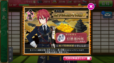 JUGEMテーマ:オンラインゲーム 刀剣乱舞の大阪城イベント、iOS版でも参加できるんですね。 審神者うれしんい。 信濃君待っててね〜(≧∇≦) この子って服装も脱ぎ方もすごいんですよね…