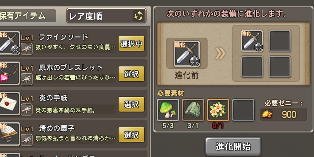 スマホゲームは嫌いなのでやりませんが、一応PC版でもあり、「カンタン」「つまんない」なんて書いたものの結構ハマってる次第ですw なんといって1日10分で終わるので、たいして進歩もしませんが、逆に続く不思議なゲームです。 というとで今日は動画のとおり、進化に必要な素材を疲労度全消費して「嘘みたいな、最後の最後で出る」というミラクル(;゚Д゚) なぜか剣の進化に花が必要という不思議設定 進化させるのは「ファイアソード」なのに気分がすっきりしてはいけません。 こういうゲームなのでステ...