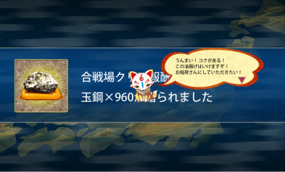 JUGEMテーマ:オンラインゲーム 来週は一週間出張です。タイミング悪ぅ〜 再来週もプレイする時間があるか微妙です。 兄者すらげっとできなかったわたしがこんな短時間でドロップ狙うとか無理ゲーです〜。 不動君は諦める羽目になるかも...... おお〜アディオ〜ふど〜うく〜ん…… まあいいさ。コンプ狙って無いし。 それよりこれ、気になった。 「うまんい」じゃなくて「うんまい」に修正されてる! あれはあれで面白かったのに!ネタになったのに!www そして、こんのすけ太る! かつてはイラッ...