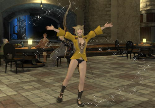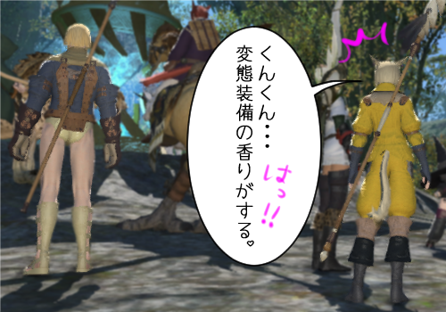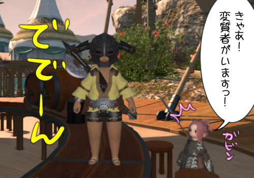 こんにちはー! がんもですしおすし!エオルゼアの平和のためにパトロール中のがんもちゃん。たまに変な格好の人を見かけます。がんもちゃんはそういう人を隠し撮りするという悪趣味があるので、今日は最新画像を載せます。念のため言っときますけど、黄色い人の方じゃないですよ?まぁ、ノリノリで撮ってる私も大概ですけどね!!おまけ最近は意味もなく集まることが多い。
