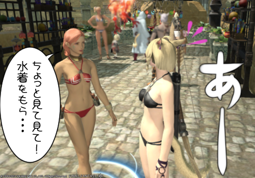 少し乗り遅れて水着をGETしたリアフレの きなこ。幸の薄さはエオルゼアトップクラス!頑張れきなこ、負けるなきなこ。